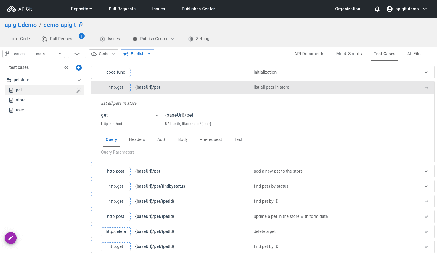 APIGit offers a flexible and robust approach to testing and monitoring APIs, through the use of pre-configured code snippets. You can validate complex workflows, ensuring that your APIs are functioning as expected.