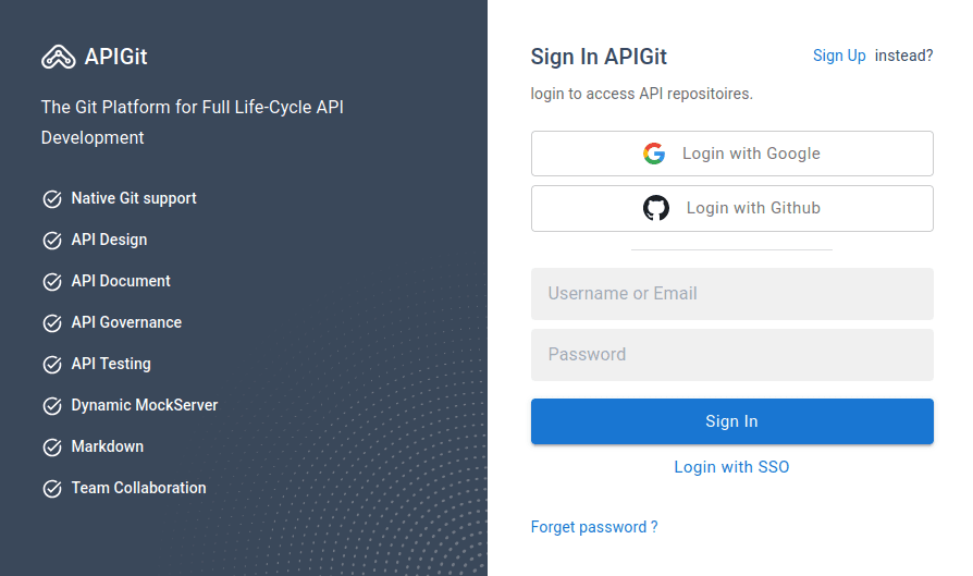APIGit is a powerful platform that combines native Git functionality with comprehensive API development tools to provide a seamless one-stop experience. For version control, you get the full power of Git with a familiar workflow similar to GitHub or GitLab. For API management, our intuitive, fully visualized editor lets you design and manage API specifications quickly and easily - no prior knowledge required. Built on the industry-standard OpenAPI specification, APIGit simplifies the entire API lifecycle from design, document, governance, mock server to testing.